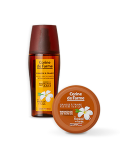 Heb je een getinte huid, word je snel bruin of geniet je het hele jaar door van de zon? Dan kun je kiezen voor een iets lagere beschermingsfactor. Daarnaast raden de Sacrées Natures Corine de Farme je aan om jezelf te verwennen met het “intense bruiningsduo”.